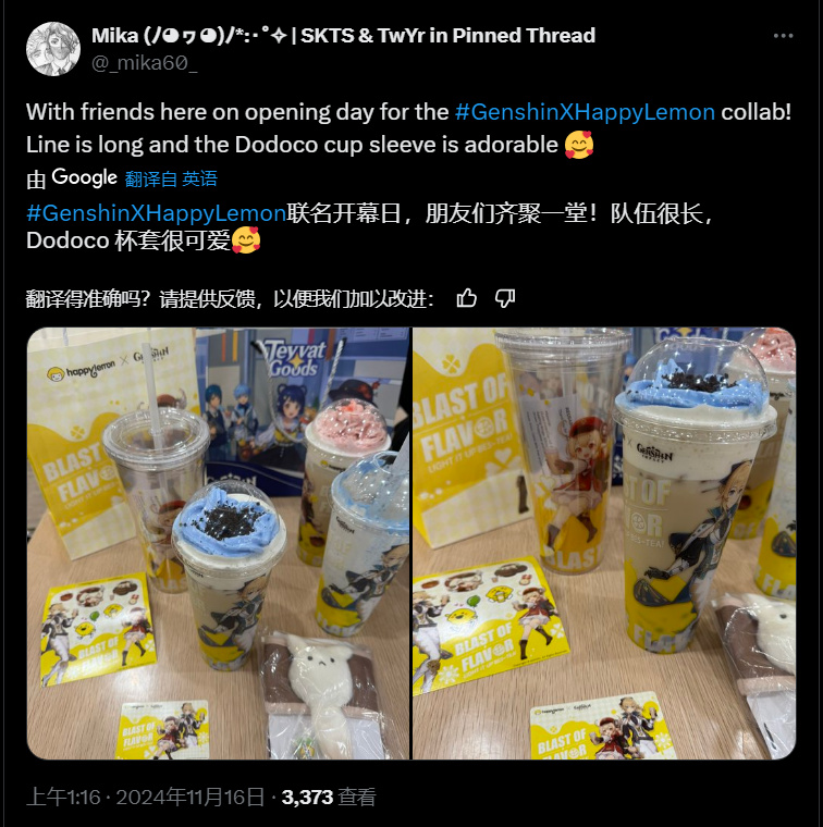 再加上可莉古灵精怪充满活力的性格和琴辛苦工作之余偷偷读恋爱小说的表现,仿佛都是各类年轻人日常生活的缩影,是联动当之无愧的人选,这次快乐柠檬联动活动也有不少人带着自己的可莉、琴周边去参加。