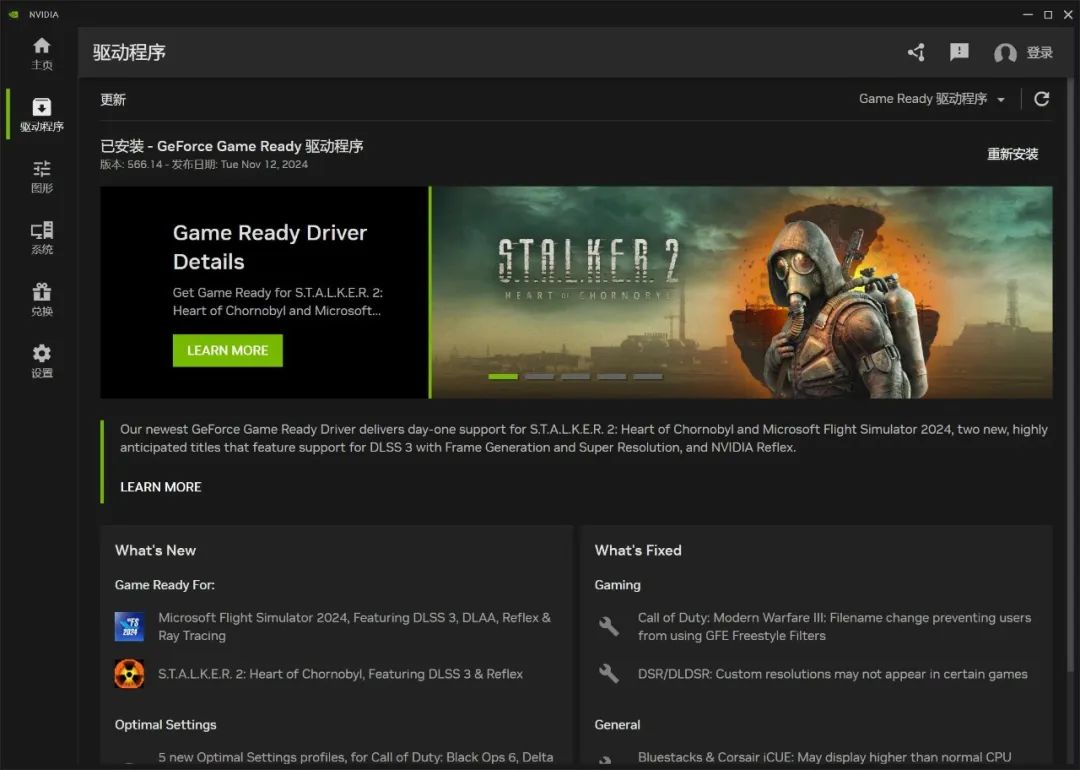 新驱动介绍界面重新设计,以要点形式突出了新版本驱动的新增和改进内容以及支持哪些游戏。