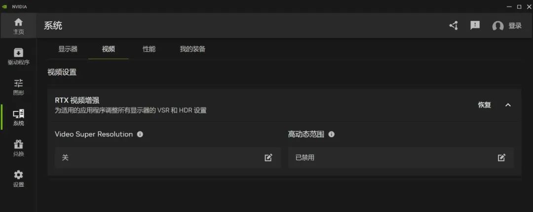 视频标签页内提供了强大的,由 AI 驱动的新工具,可增强流媒体和本地播放视频的效果,包括RTX VSR 视频超分辨率 (RTX Video Super Resolution,VSR)和RTX 高动态范围 (HDR)功能。
