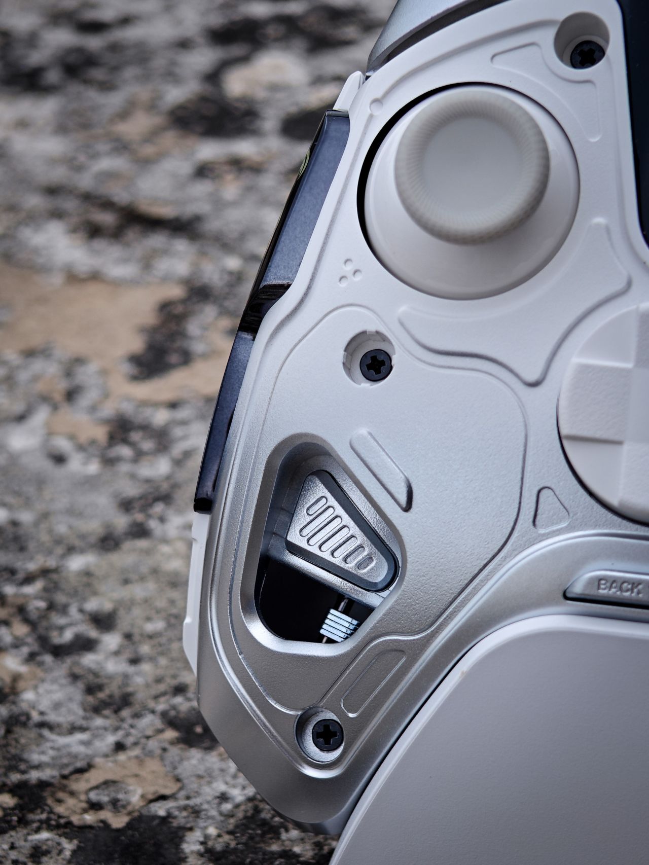肩键采用了机械开关,扳机为高精度霍尔扳机,支持两档行程切换,背面设有扳机锁,同时均有细密的防滑纹路设计。