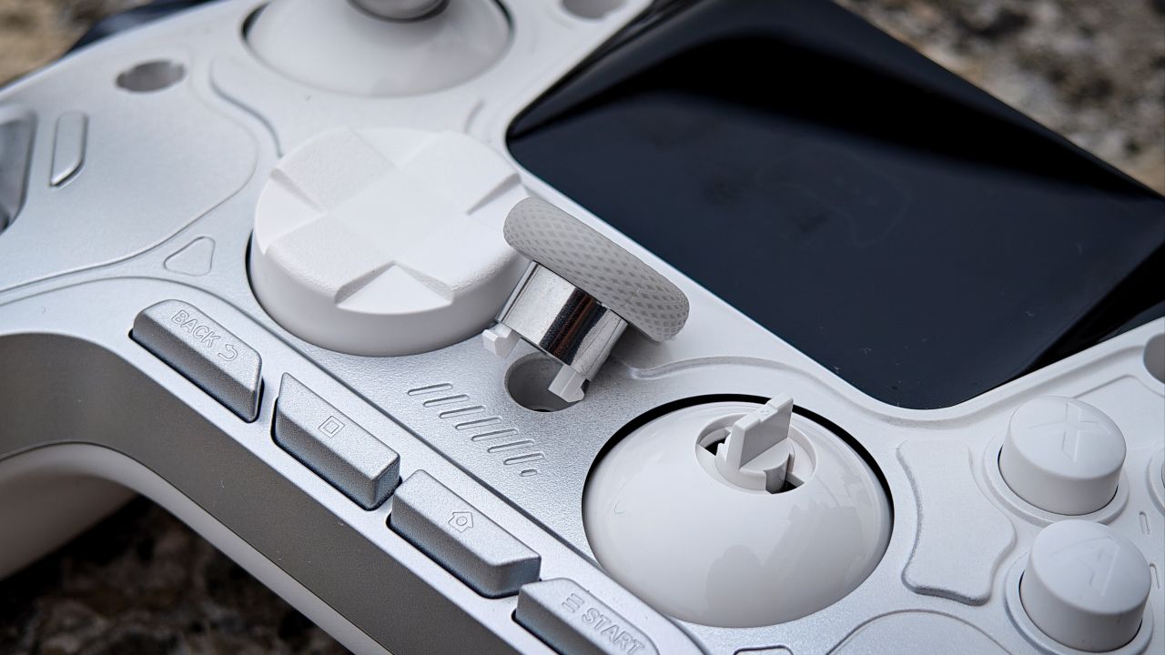 摇杆采用了高精度霍尔摇杆,支持在手柄上进行手柄曲线的自定义设置。手柄摇杆自带了防磨金属环,转动手感丝滑,摇杆还支持拆卸,更换不同高度摇杆。