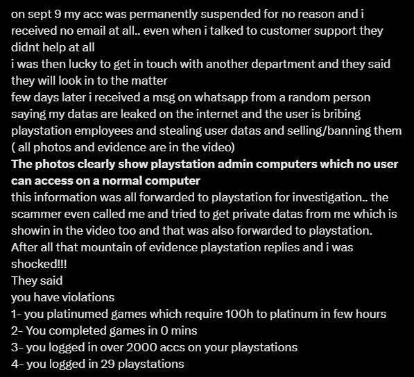 根據Hakoom用軟件翻譯成英文的推特內容來看,其個人PSN賬號在9月9日遭到了索尼方面的無故封禁(45天),但Hakoom此前並未收到任何形式的告知,聯繫客服也得到了十分敷衍的回答。