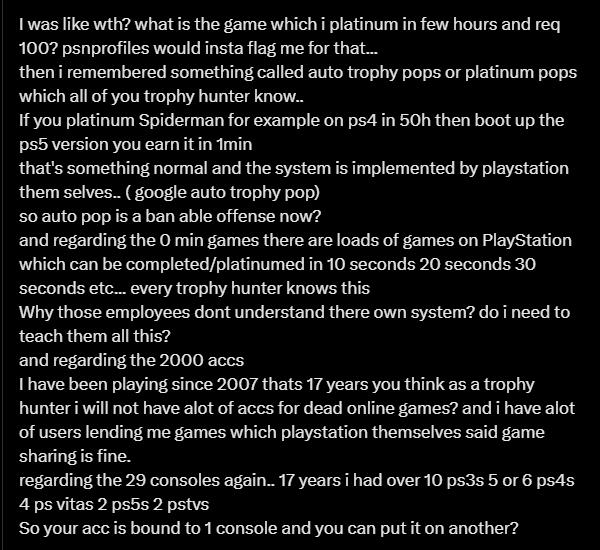 Hakoom表示在接近17年的遊戲生涯中,他擁有超過10臺PS3、5到6臺PS4、4臺PS Vitas、2臺PS5、2臺PSTV,併發出“難道只能把賬號綁定在一臺機器上”的靈魂質問。