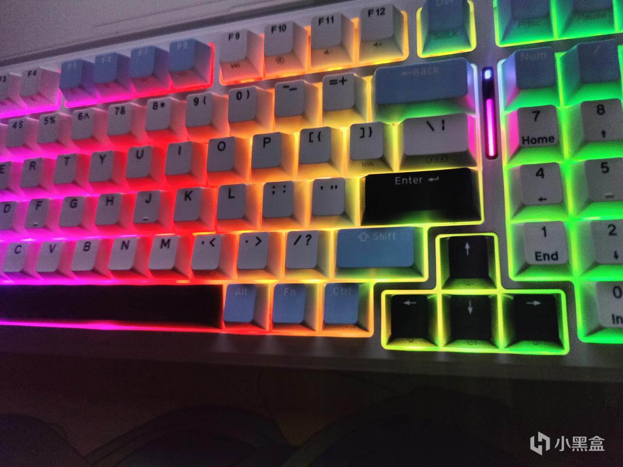 珂芝K98采用了下灯位的RGB背光,在夜晚使用的是可谓是绚丽多彩,光彩夺目。