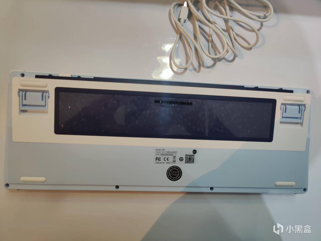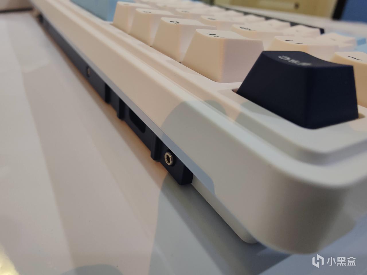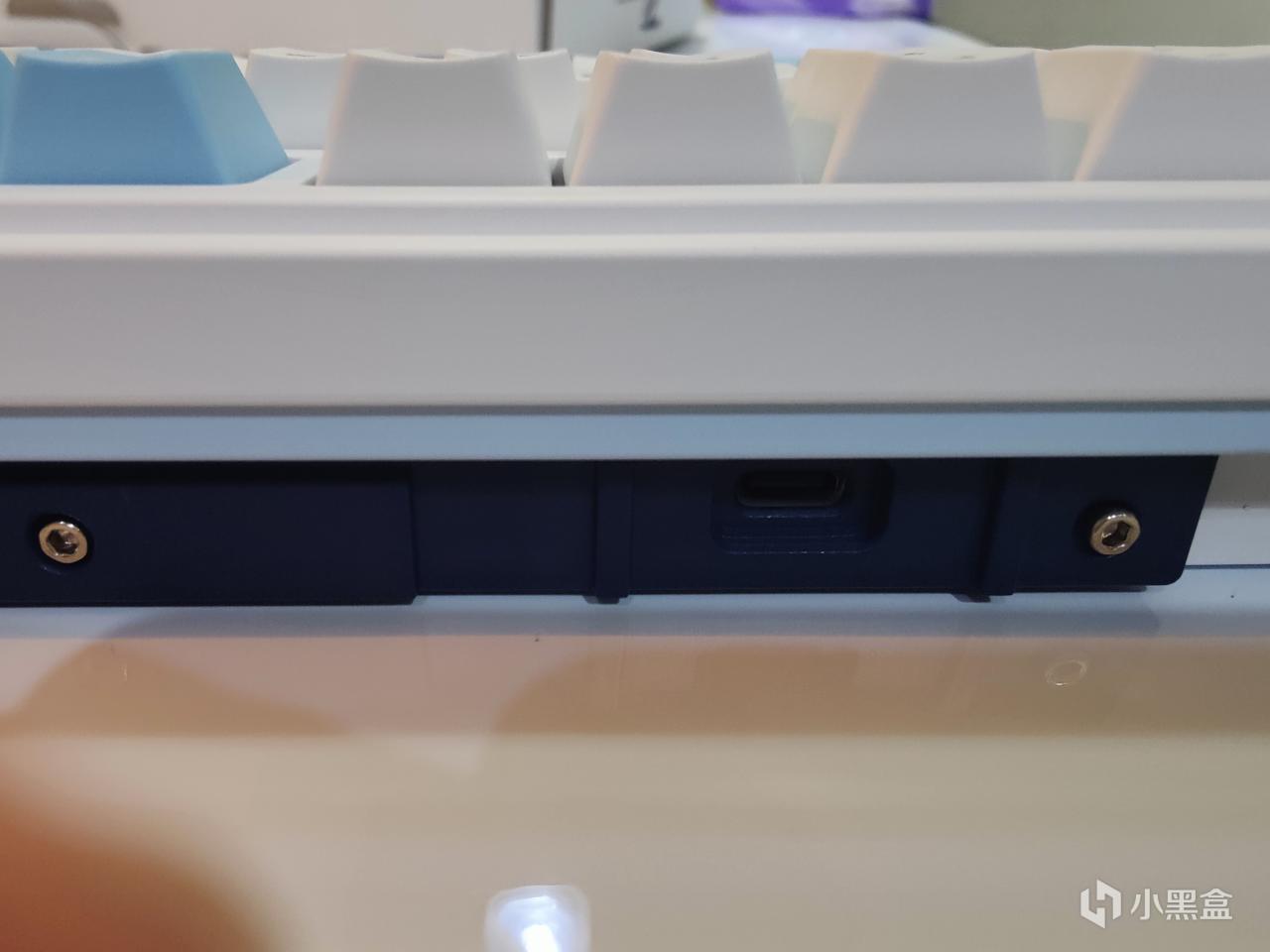 键盘的正侧面,有一个USB接口。从这个角度,可以看到珂芝K98采用是螺丝设计,相比大部分的卡扣设计的键盘,整体的结构更加紧密,不容易松动,就算是客制化玩家反复拆装也没有影响。