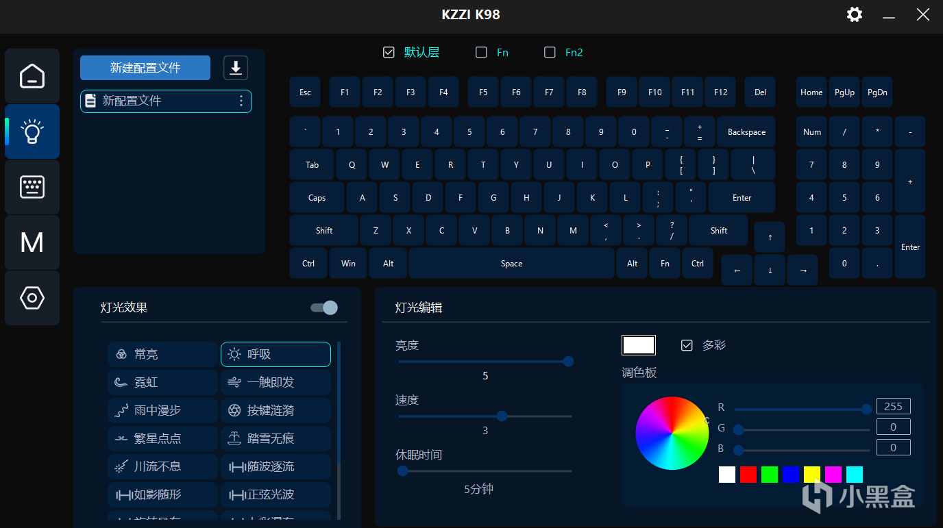在驱动方面,珂芝K98支持按键功能自定义、灯光效果编辑、自定义宏效果等,可玩性很大。最值得惊叹的是,珂芝的驱动支持云在线热更新,获取新版本非常方便。