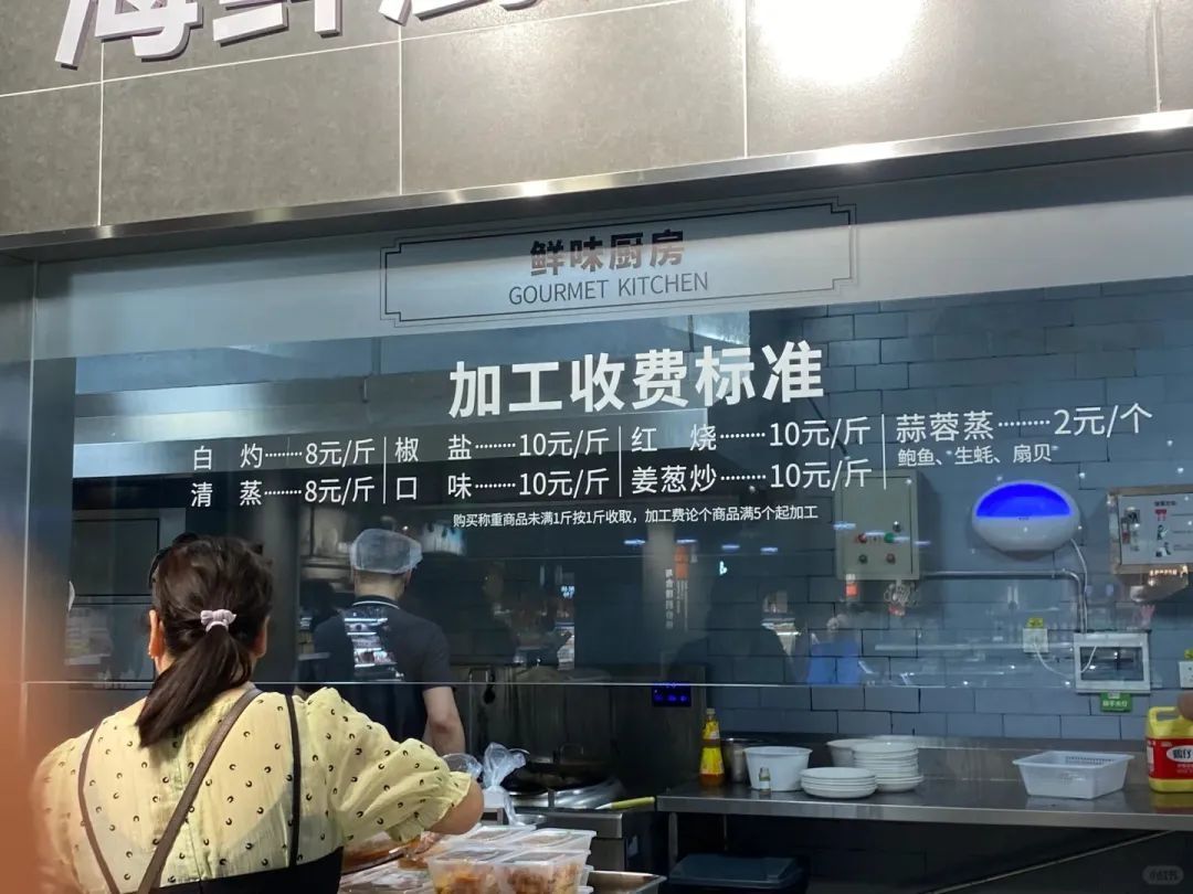 顧客在胖東來購買海鮮食材,可以在店內直接加工,並收取一定的加工費。清蒸、白灼等簡單加工每斤收費8元,而爆炒、紅燒複雜一些的則爲10元每斤。