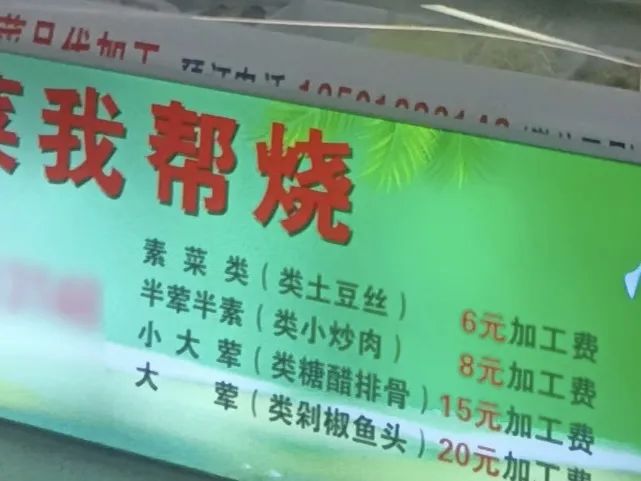 在菜市場,阿慧發現兩家提供代炒服務的攤位,加工收費標準均10元起步,常見的葷素搭配家庭小炒只需10元,稍微複雜點的海鮮加工費也只有18元。