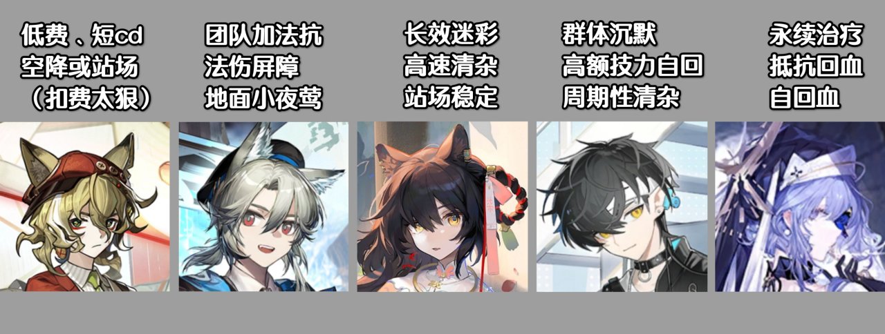 目前感谢庆典限定池已有5期,裁度、深律、子月、蚀清、絮雨这五位卡池陪跑五星博士们都练了嘛?职业暂无重复,博士们认为哪一个实用性最高呢?简单整理一下
