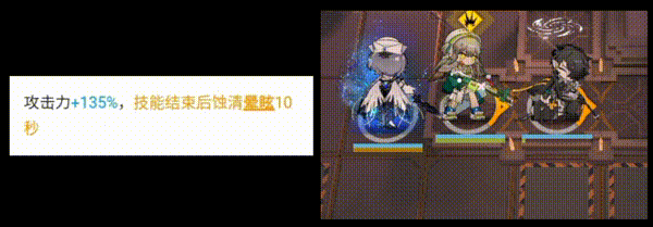 ①技能初始技力为0,30技力,落地后持续触发天赋的话,18秒左右即可开启,①技能期间蚀清的输出能力达到最高,攻击力提升至943×2.35≈2216,30秒内能打10次