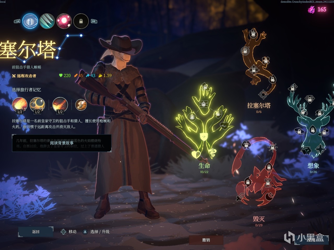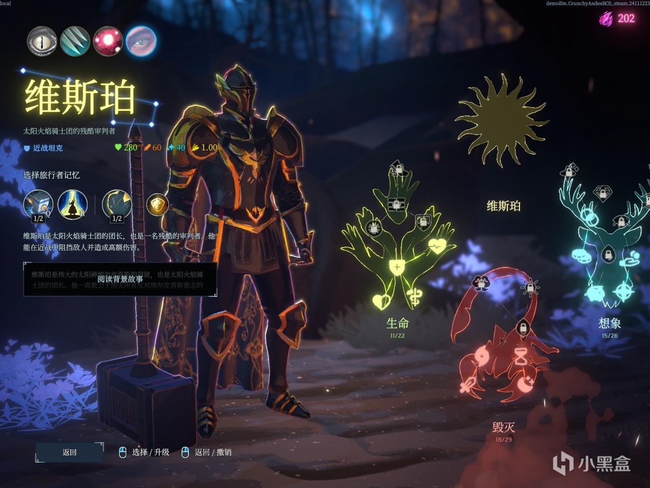 而在加点界面最上面就是对应角色的专属天赋,这个对应着角色本身的特定内容进行了设计,但是我没想到的居然是第四个角色直接放了个“还未做完”嘿嘿。