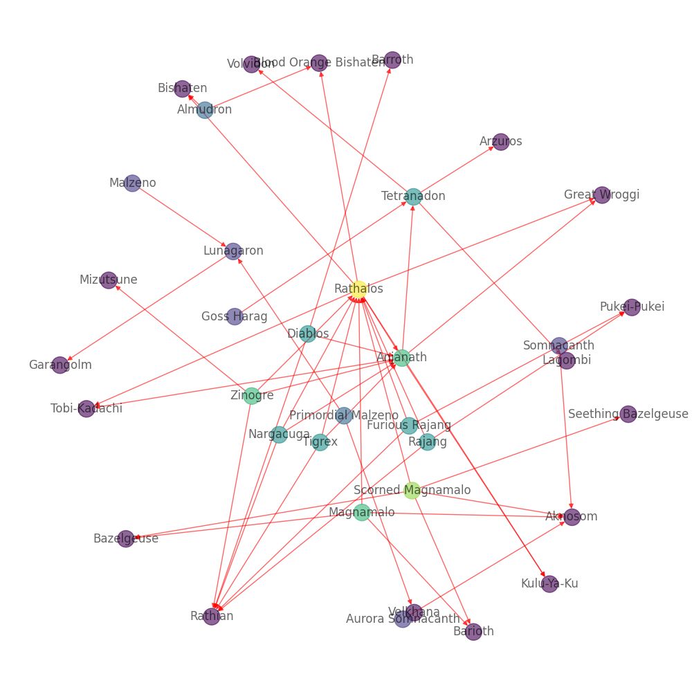 《怪物獵人》系列自推出以來,已經包含了上百種怪物。直到《怪物獵人世界》(Monster Hunter World)的推出,引入了領地爭奪機制,使得整個怪物的食物鏈和生態系統之間的聯繫變得更加明確。現在,海外有一位研究物理學的玩家,使用程序庫工具爲《怪物獵人世界》和《怪物獵人崛起》(Monster Hunter Rise)建立了一個怪物關聯研究圖。