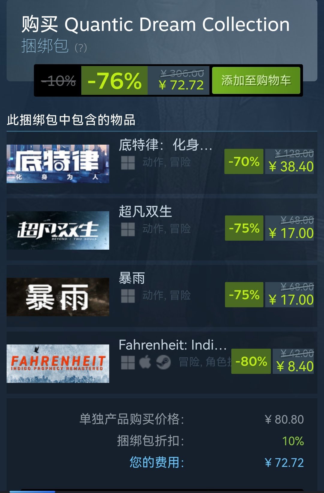 另外:Steam有個官方捆綁包72.72可以拿下以下四款遊戲
