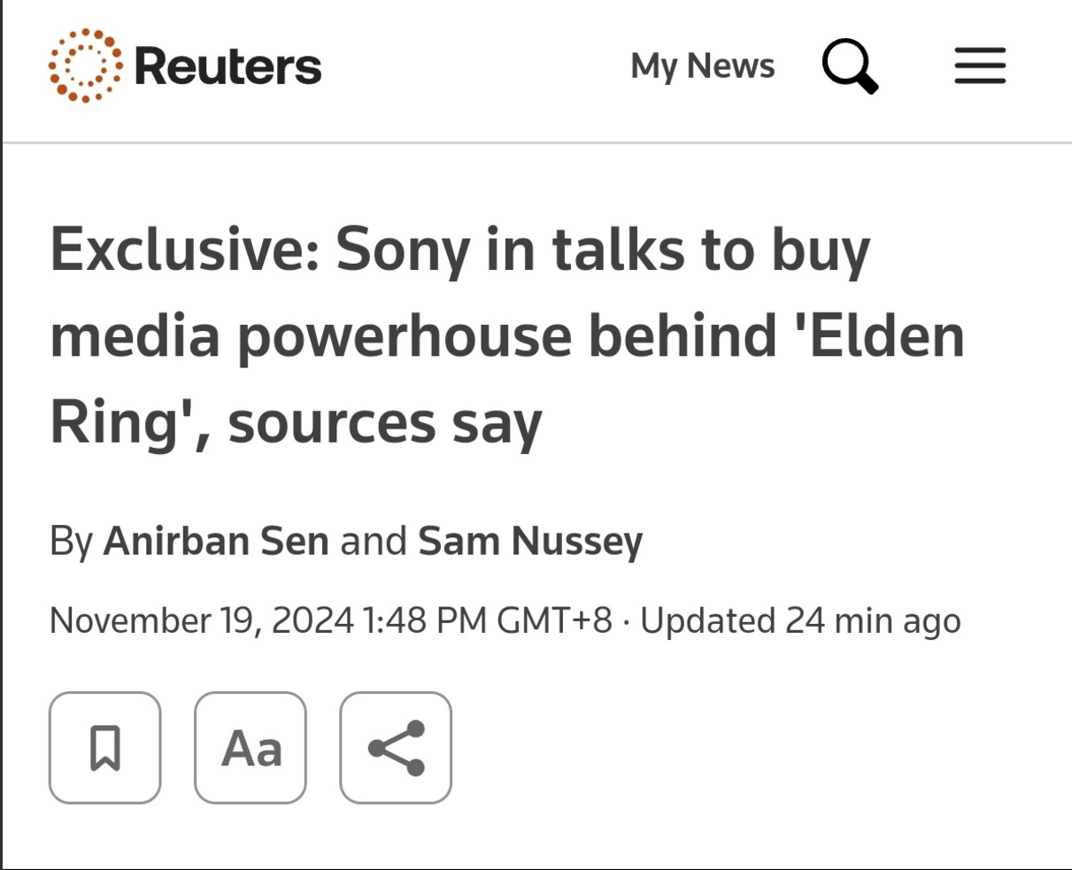 【传闻】路透社报道,两名知情人士称索尼正在与角川进行收购谈判。