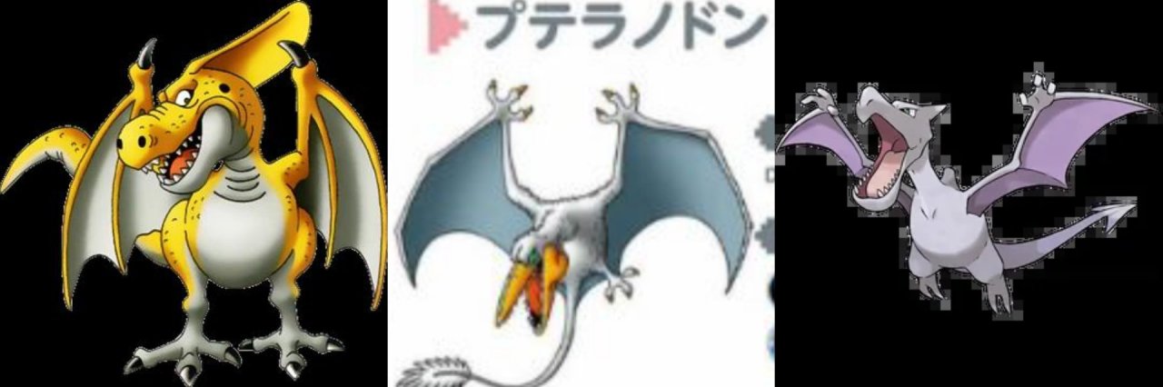 第一位是勇斗的ドラキー和寶可夢的超音蝠,二者據資料原型都來自於吸血蝙蝠,但是ドラキー還有飛蛾的特徵,其頭頂的觸角保留着廢案飛蛾怪物的樣子(コウモリの姿をしたモンスター。一応、吸血コウモリらしい。當初は蛾のモンスターという設定だったようだが、なぜかコウモリになったようである。そのためなのか、コウモリなのに頭に觸覚のようなものが生えている。)超音蝠在吸血蝠的基礎上特化了它的雙足,像燕尾一樣的尾巴其實是它的腳,這一點可以在現實蝙蝠身上看到相似的特點。