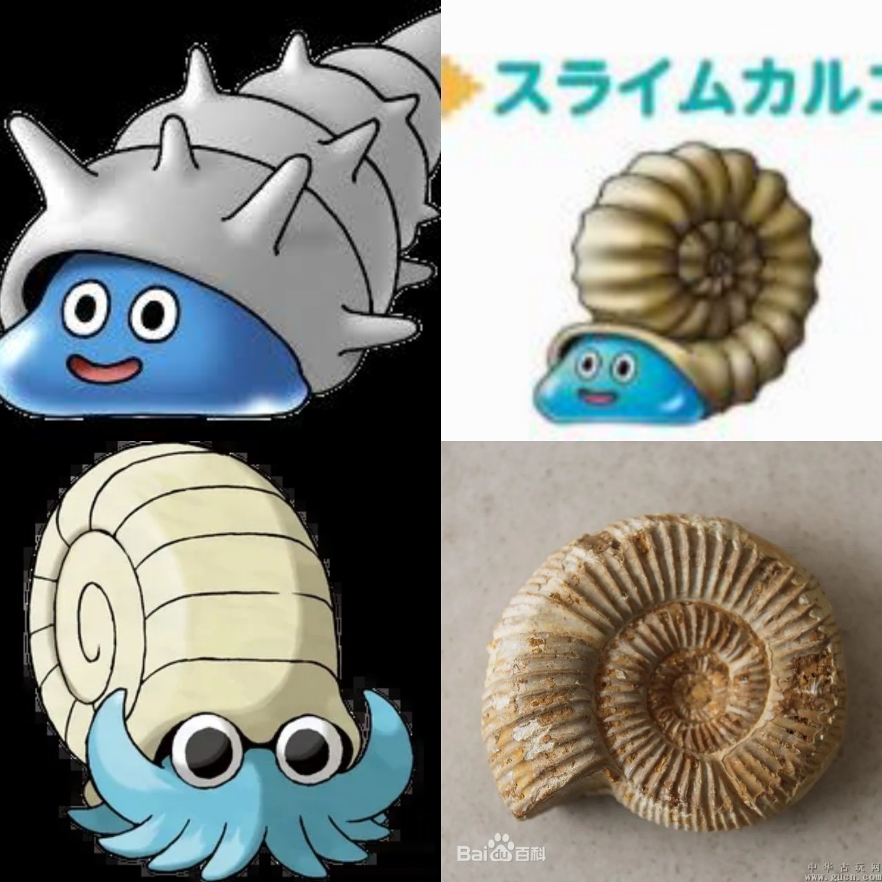 那張大圖上舉的例子還不如我找的像。現實菊石就長這個樣子,有點類似鸚鵡螺,是一種白堊紀時期就已滅絕的頭足綱動物,現存的頭足綱包括鸚鵡螺,章魚,烏賊等。