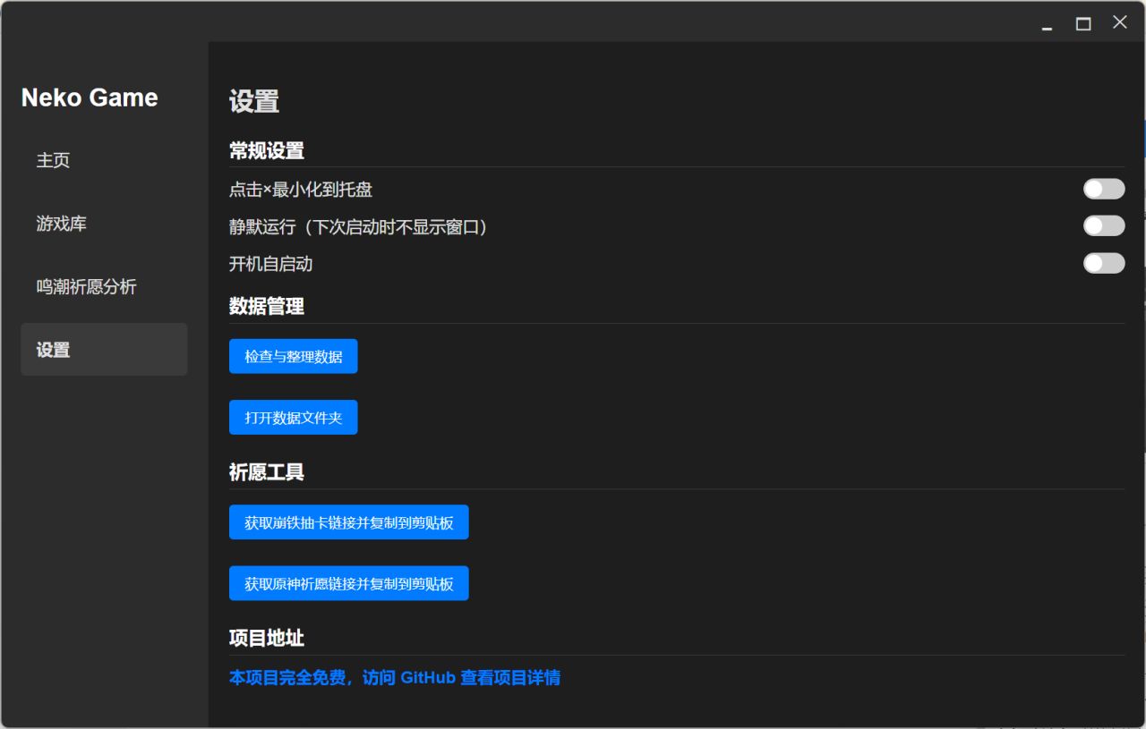 NekoGame 是一個專爲 Windows 平臺開發的工具,功能強大但佔用低,支持後臺運行和開機自啓動!它以 輕量化、便捷性和隱私保護 爲特色,旨在爲玩家提供高效的遊戲記錄與分析能力。