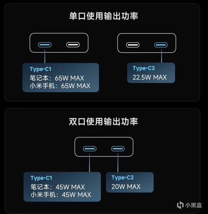 C1单口支持65W,小米的65W和笔记本的PD 65W,也支持三星的快充。