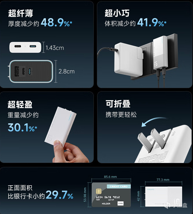 另外,高铁上和酒店里的插孔不一定很牢固,但是小卡片重心不会延伸很长,变成“杠杆”掉下来。