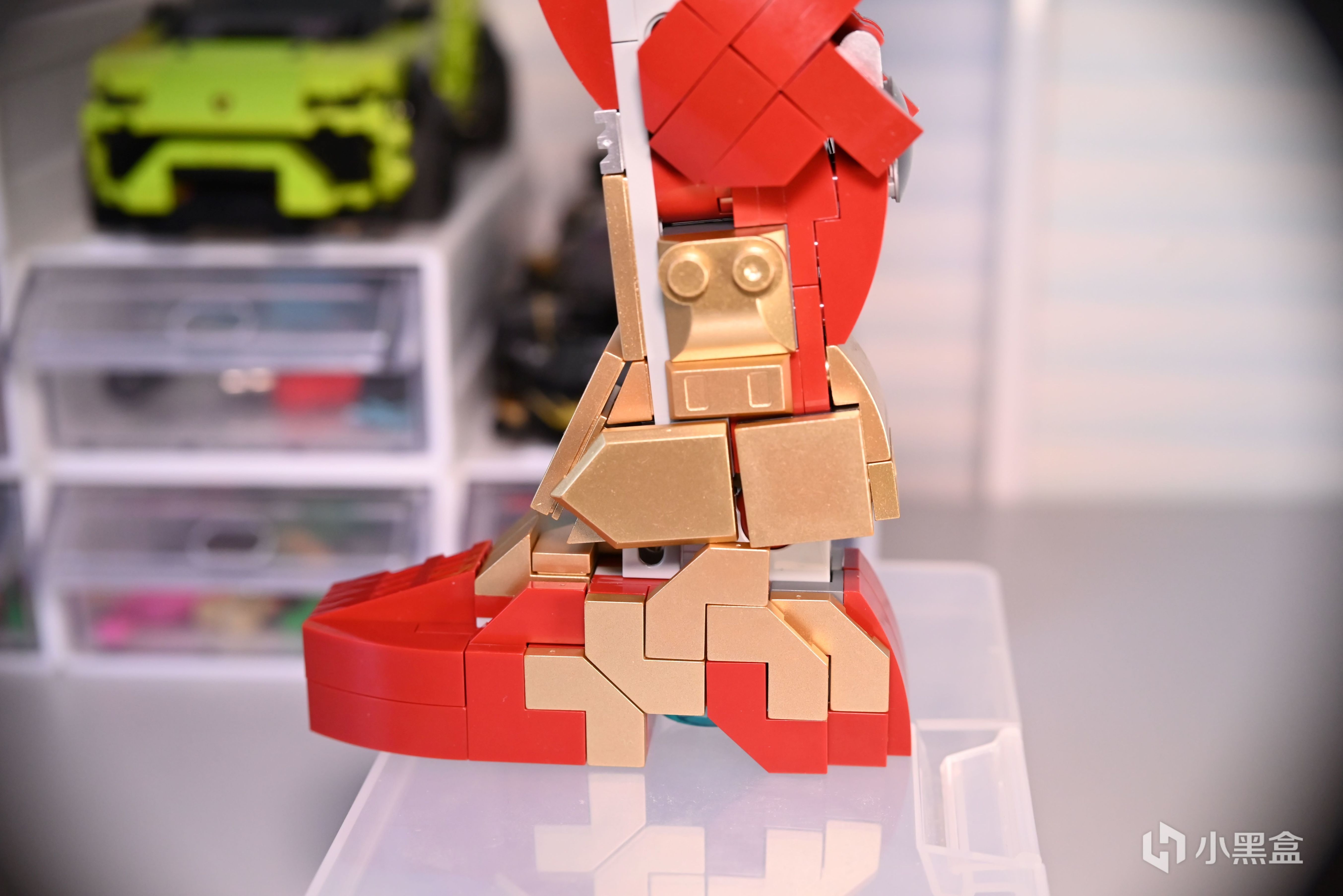 腿部和腳部的細節,在保證外置裝甲結構的同時對腳部開放了部分可動性,連接關節使用的球形連接磚。
