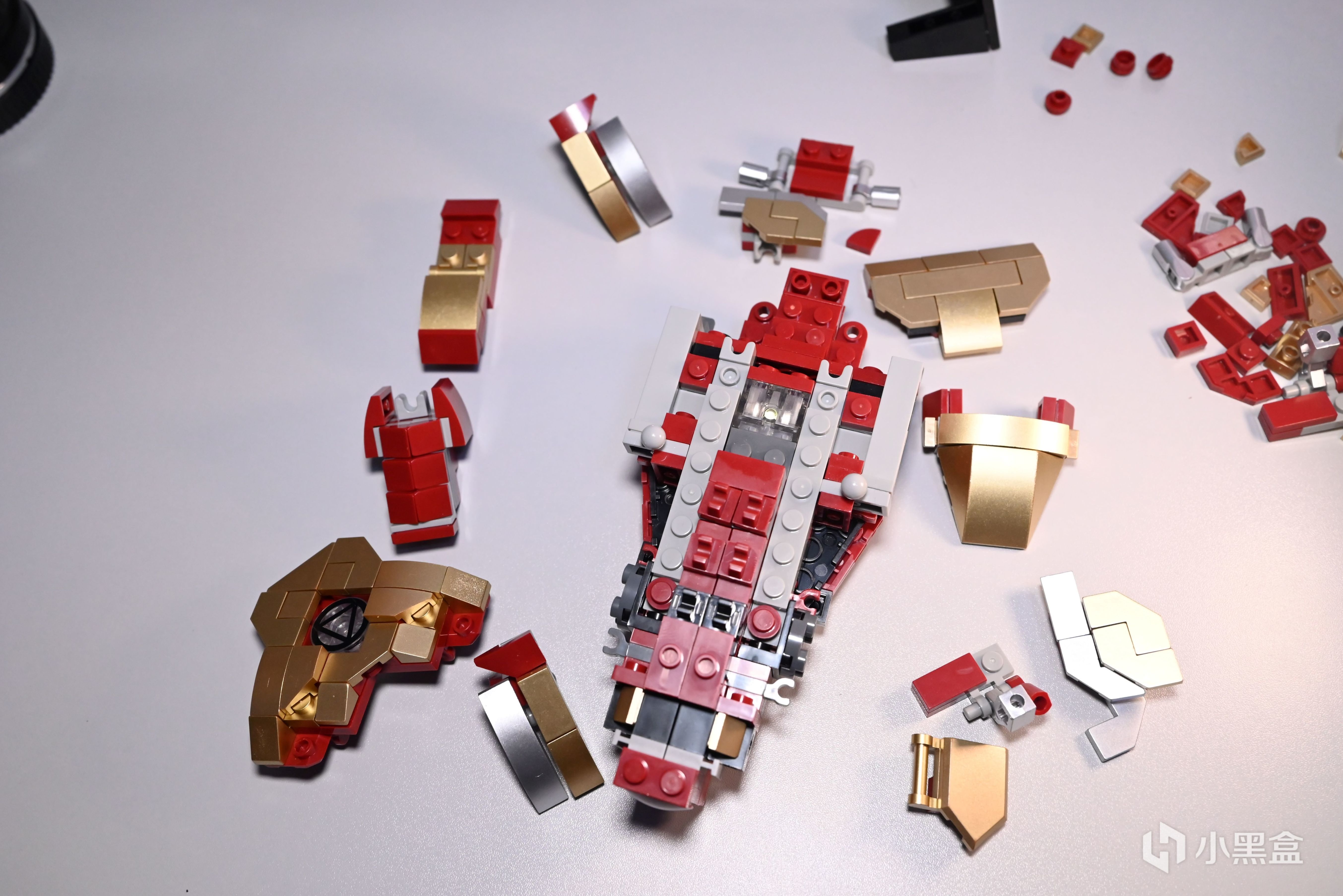 玩具的質量中規中矩,電鍍金屬漆面和單獨開模的零件是加分項之一。大量的小零件去做細節還原讓他的拼裝過程比較繁瑣。小臂關節連接部分稍微鬆散,其他關節部分還可以。