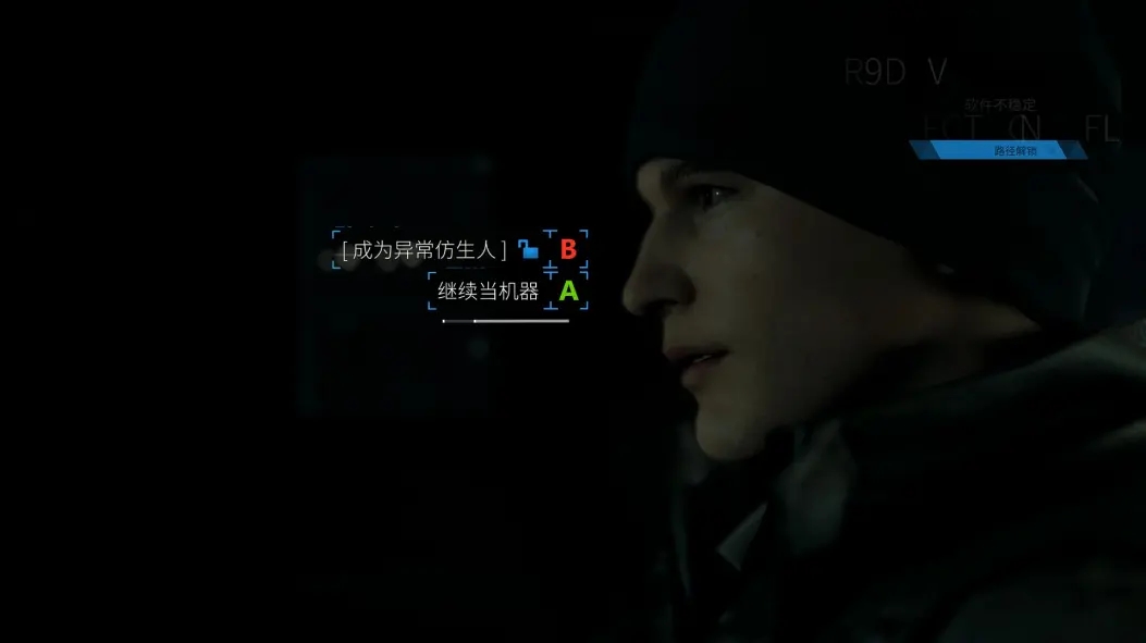 2.在第八章:询问中,康纳选择探测记忆取得供词,随后选择介入,之后就会被异常仿生人击杀。