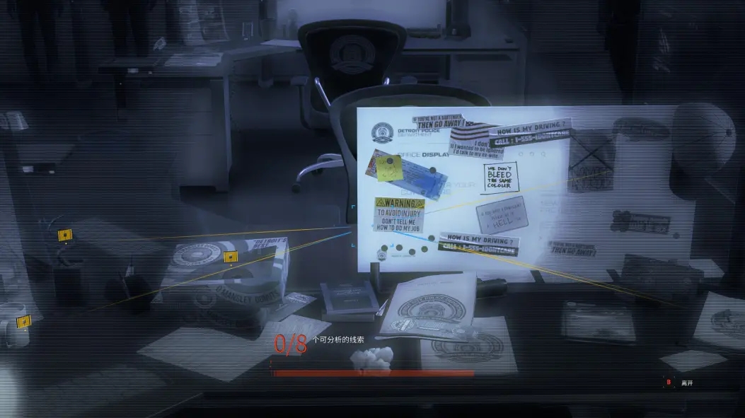10.Know Your Partner(了解你的搭档):在第十一章:等待汉克中,观察了汉克办公桌上的所有东西(包括音乐与电话),同时利用得到的线索与汉克交谈得到新的线索。