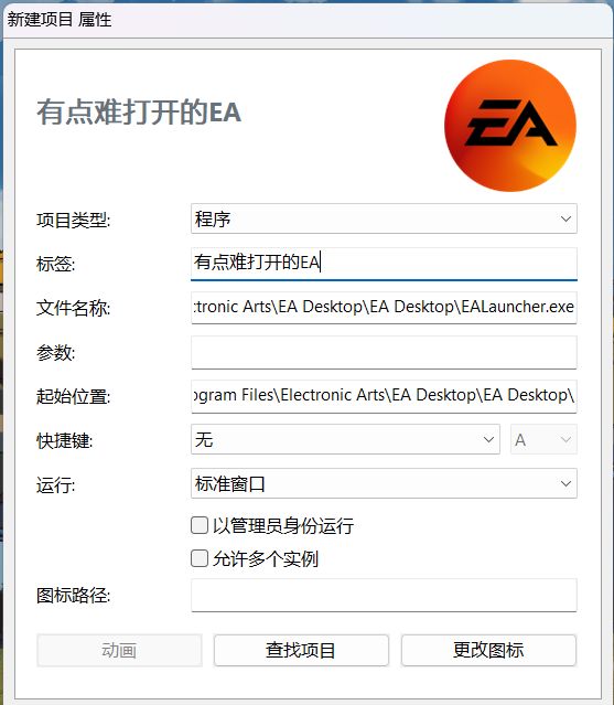 回到“項目”窗口,複製它的完整路徑,到文件名稱這邊,順便改一下標籤。在這裏還可以設置它的自定義快捷鍵。