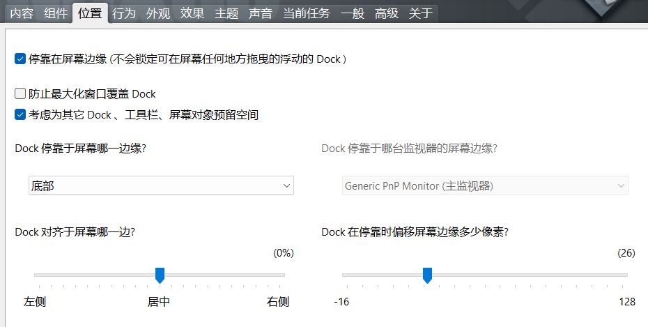 打開後,在“位置”窗口中可以選擇Dock(應用欄)的位置