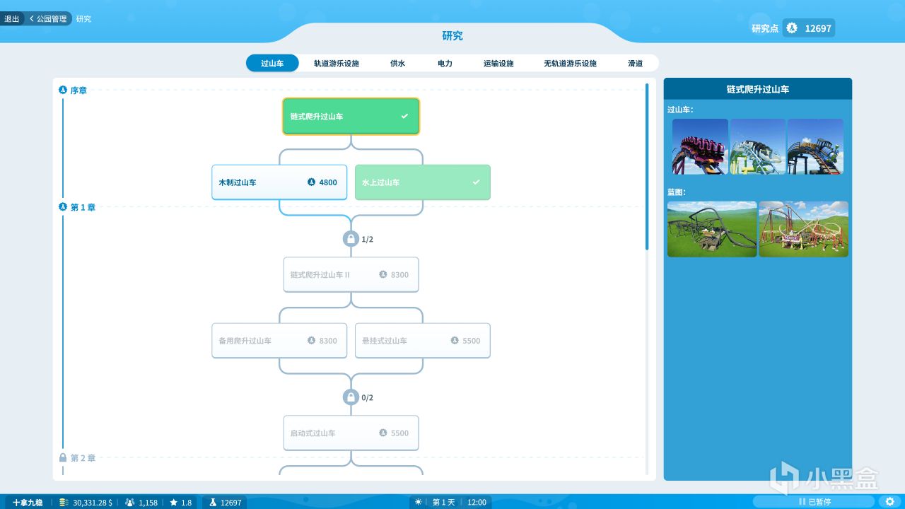 這裏需要注意的是,本作引入了一種新的機制,研究樹,玩家需要通過消費研究點來獲取新的遊樂設施解鎖,具體獲取遊樂點的方式需要玩家專門建設機械工坊,僱傭機械師在此工作,但問題就出在這裏,用一個系統來限制玩家的發展速度,爲遊戲提供一點養成元素無可厚非,但在實際的遊玩體驗上,這個系統顯得有些乏善可陳,它只是讓你不斷等待着,等待着研究點數一點一點上升,來解鎖你在下一個劇情任務裏的目標,而並沒有爲遊戲帶來更多的挑戰。