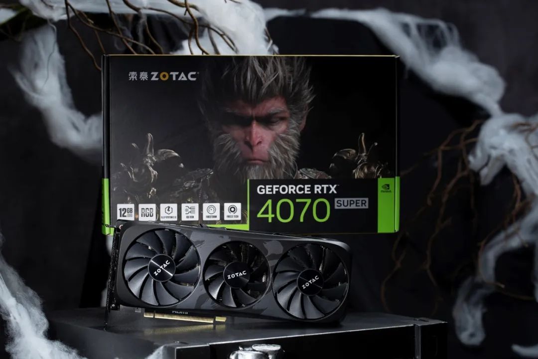 索泰RTX 4070 SUPER 12GB 悟空定制显卡,不仅有着游戏专属定制外观,正/背面均由精密浮雕印刷工艺制作而成,质感相当棒。本身的游戏性能也十分优秀,以《黑神话:悟空》为例,配合DLSS帧生成技术,索泰RTX 4070 SUPER 12GB 悟空可以在2K分辨率、超采60的情况下,开启超高光追和影视级画质,游戏体验十分给力。