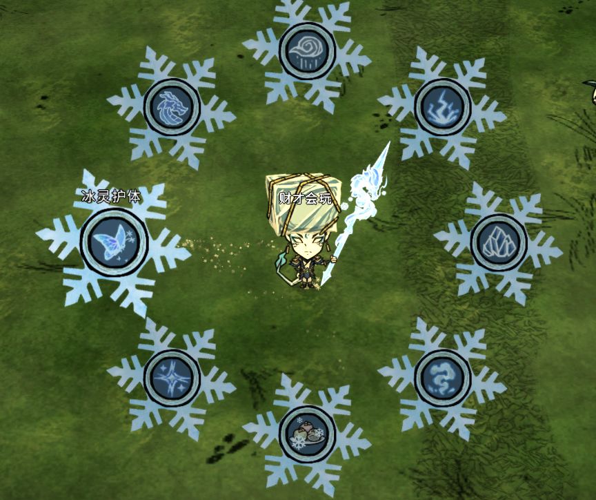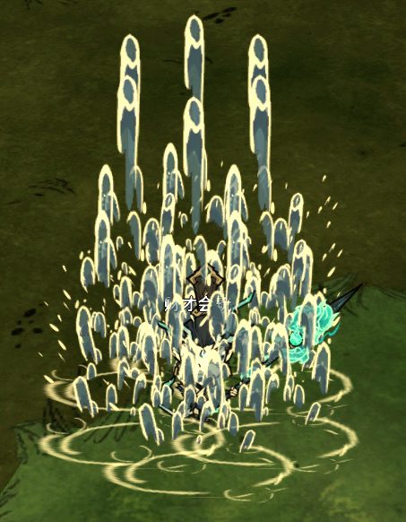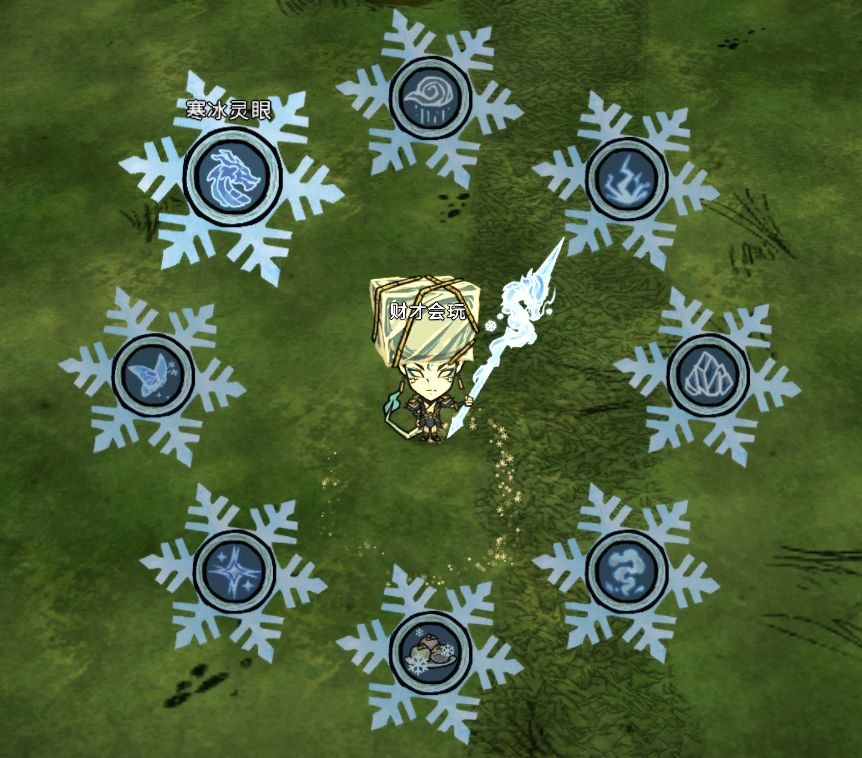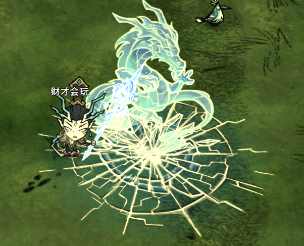 當寒冰靈氣值≥50點,達到第三層時,水龍吟的神通,對目標位置覆蓋五團冰火,在所有生物之間進行彈射,同時給自己一個護盾。