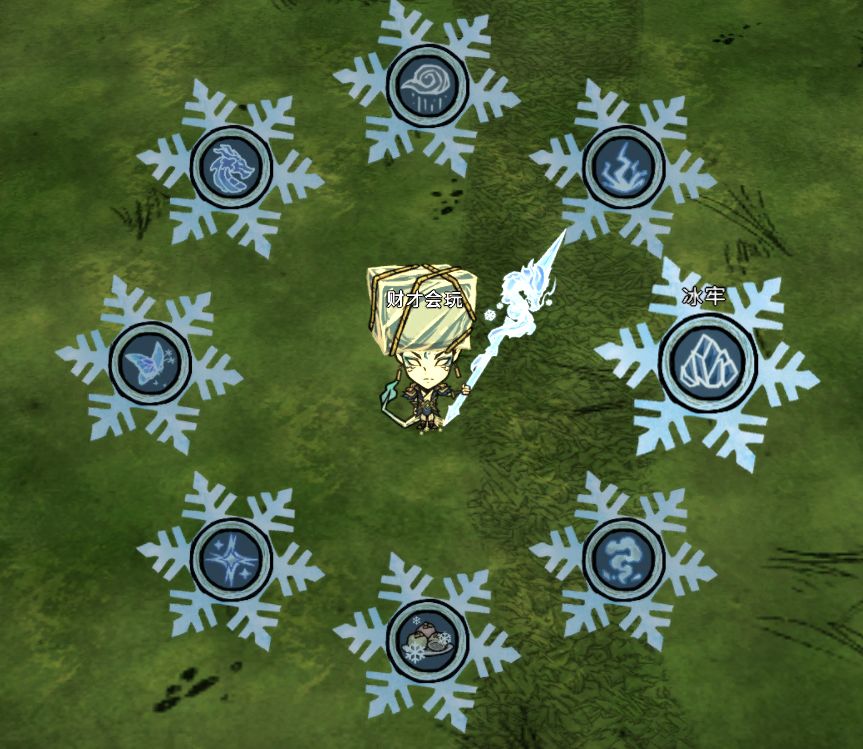 冰牢:會產生一圈的冰礦,可以困住敵人,開鑿會掉落冰,一定時間之後破碎也會掉落冰。