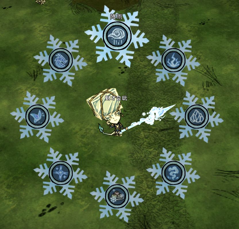 降雨:讓天氣變爲雨天(冬天則會下雪),龍太子不受潮溼度的影響,降雨能降低溫度,提高移速,額外恢復理智值。
