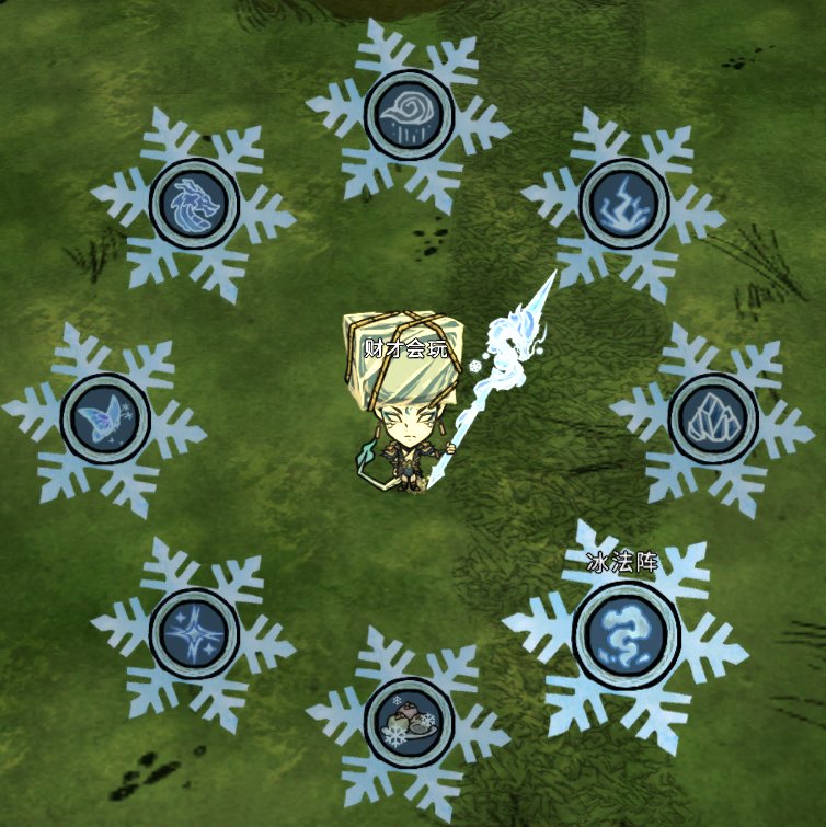 冰法陣:釋放冰噴泉,小範圍的凍住敵人。