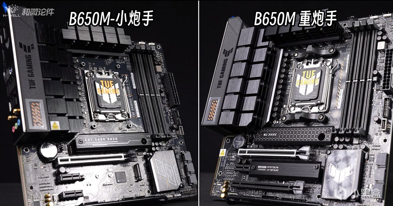 B650重炮手與小炮手2張主板,比較直觀的地方就是小炮手減少了一個M.2的馬甲,供電方面也有縮減,重炮手爲12+2相60A,而小炮手爲8+2相60A,但好在也能滿足9950X的供電需求,所以還能接受,I/O面板處小炮手對比重炮手也減少了高速USB接口的數量,但並沒有太多,而且2張主板都有不帶WIFI的版本,追求性價比小炮手也是值得選擇的,這兩張主板因爲顯卡插槽設計在了第二槽,在個別MATX海景房機箱中,如果底部加裝了風扇,而你的顯卡剛好又是3槽卡,可能會出現兼容性問題。