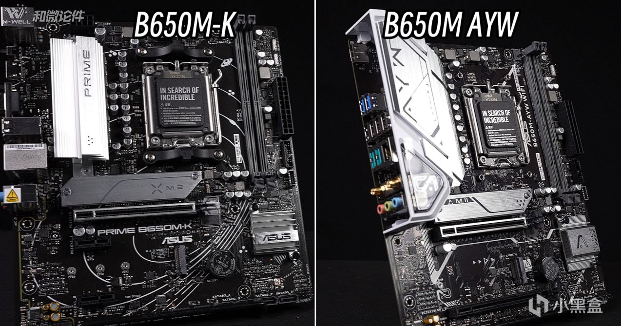 華碩這裏的B650M-K與B650M AYW,兩張主板都標配了2個M.2接口,其中直連CPU接口的M.2是支持PCIe5.0X4,並且有散熱馬甲覆蓋,前置TYPE-C接口也都有標配,背面的I/O接口初USB數量也相同,但是AYW增加了WIFI與藍牙,在京東目前AYW的價格比-K甚至還更便宜,我會更加推薦大家購買B650M AYW這張主板。