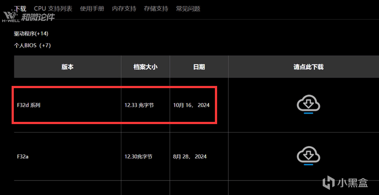對於入門級別的B650主板壓力還是不小的,但是隻有1款主板還沒有更新到這一版的BIOS,就是技嘉的B650 gaming plus 白魔鷹。打開它的官網目前它所支持最新版的BIOS是F32D,因此這張主板的測試數據會比較特殊。