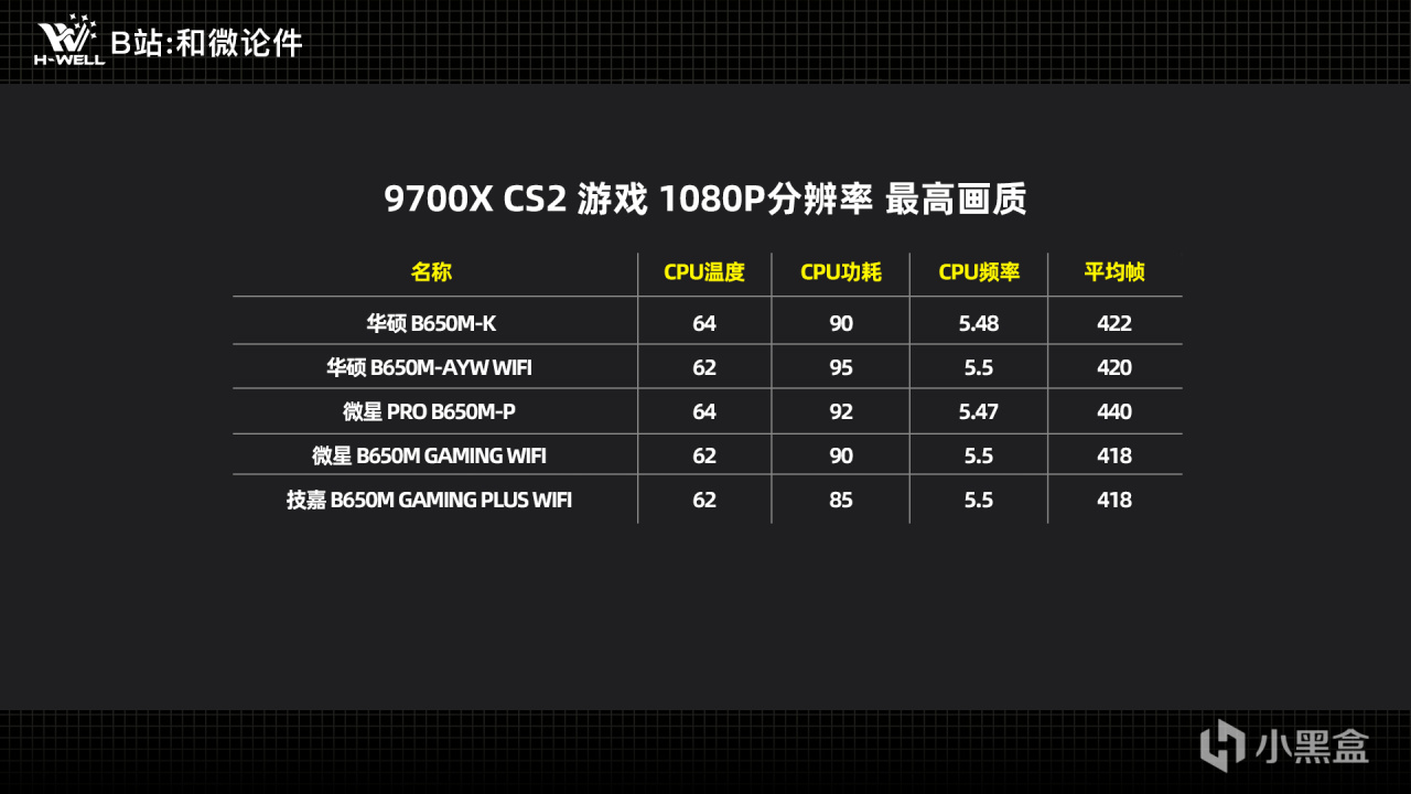 最後就是9700X的遊戲測試,我們重點測試了5張原先在理論測試中沒有跑滿9950X的主板,這5張主板在遊戲中都是可以將9700X的性能完全發揮出來。