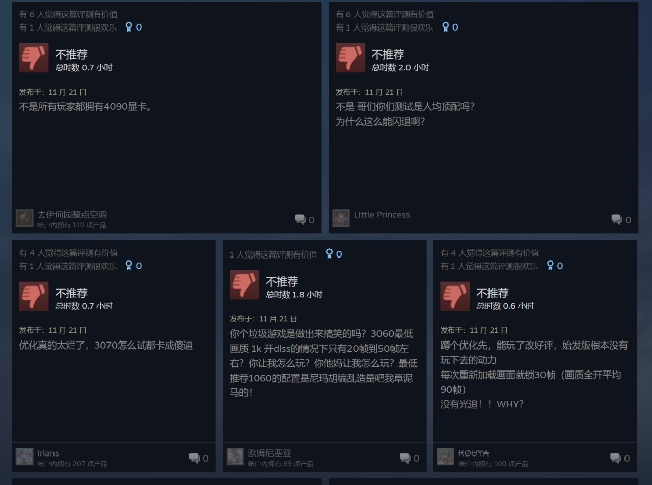 我也是看了些许评论,大部分还是游戏优化问题,游戏卡或者玩不了。这说明游戏其实内容并不差。