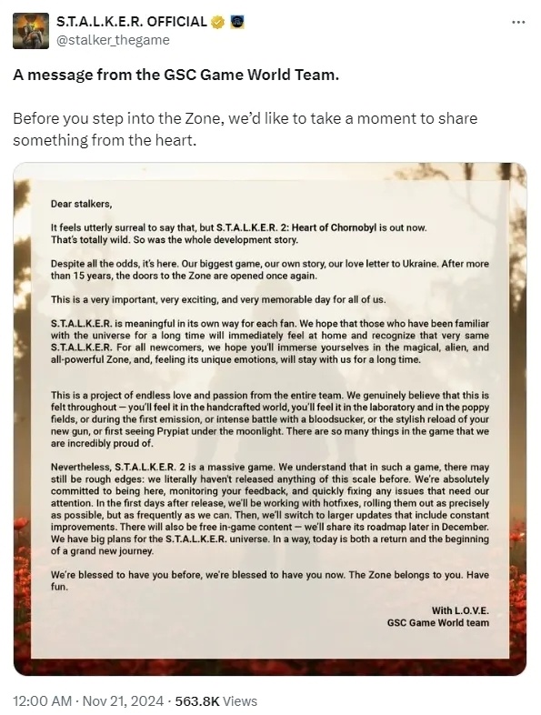 大概内容他们会尽快修复,之后也将转而推出大型更新,持续改进游戏内容。此外还计划推出免费内容,并将在12月晚些时候分享详细的更新路线图。