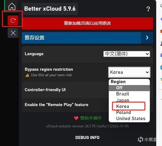 進來後我們可以點擊右上角對Better xCloud進行設置語言、地區什麼的。