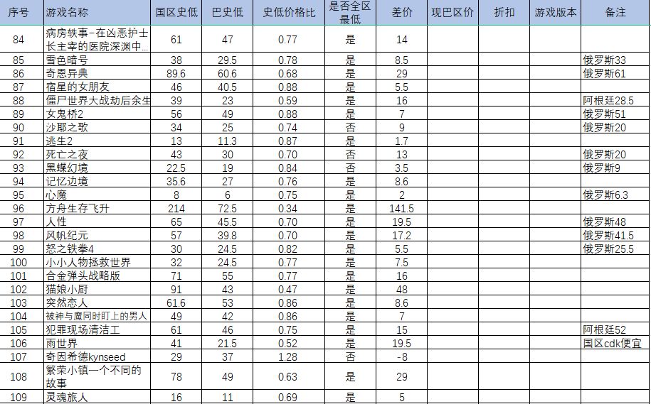 steam巴基斯坦,這個區,有不少我感興趣的好遊戲都是最低價。就是數量不太多。而且好像還可以用美金充值卡。可以參考一下,都是統計的史低價格。不一定能達到。