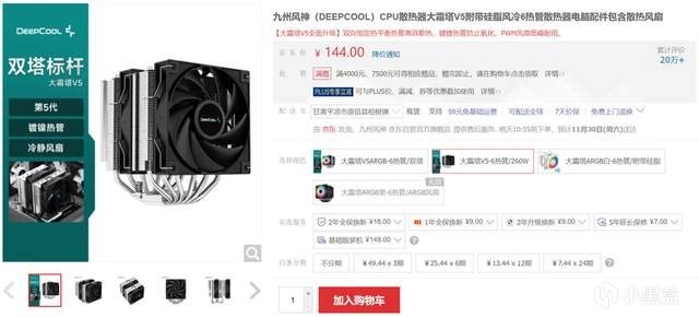 儘管銳龍 7 9700X的發熱量並不大,但考慮到開啓105W BIOS後其發熱還是會明顯增加,所以建議大家用稍微差不多點的散熱器,這裏推薦了九州風神 大霜塔V5,該散熱器採用雙塔6熱管結構,散熱效能強悍,同時144元的價格性價比很高。
