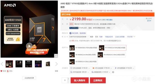 CPU方面,雖然最近銳龍 7 9800X3D的熱度很高,但銳龍 7 9700X的性價比無疑更高,畢竟除了3D緩存外,兩者的規格較爲接近,而銳龍 7 9700X的價格便宜了1600元,個人覺得銳龍 7 9700X更適合追求高性價比的玩家。