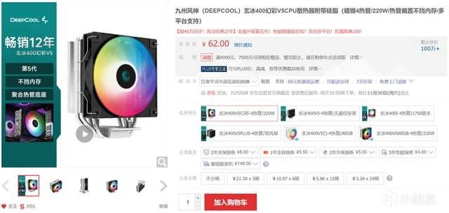 散熱器推薦了九州風神 玄冰400 幻彩V5版,這款散熱器沒啥好說的,算是入門級點名率超高的一款散熱器了,由於銳龍 5 9600X發熱量不大,用來壓它挺適合的。