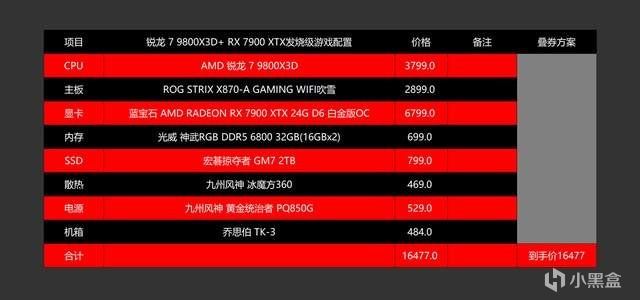 3、銳龍 7 9800X3D+ RX 7900 XTX發燒級遊戲配置