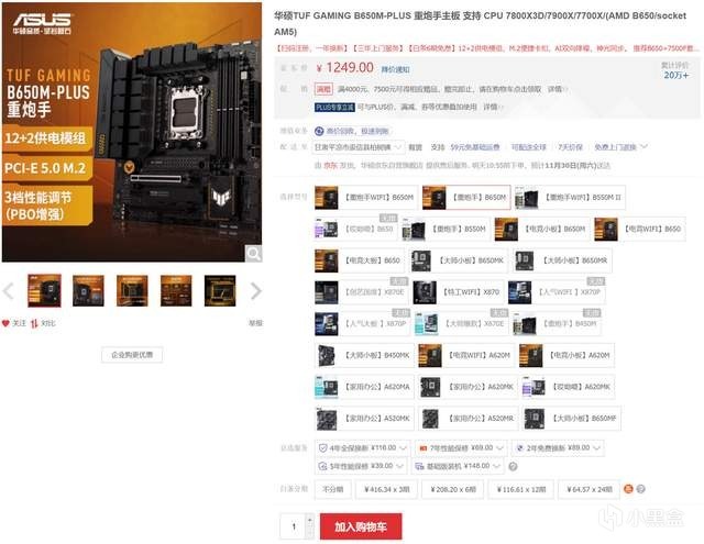 主板方面,由於目前B850還未上市,用B650無疑是性價比更高的選擇,而這塊華碩TUF GAMING B650M-PLUS重炮手做工紮實,擴展性強,對ZEN5新U的支持度也非常好,所以它一直在我的千元級B650的推薦列表裏。
