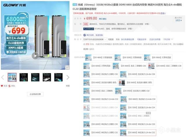 內存選擇了光威 神武RGB DDR5 6800 32GB(16GBx2),該內存相較雙十一599元的特價確實有所上漲,但由於雙十一後其他內存漲價更狠,所以其699元的價格也顯得不那麼坑了。