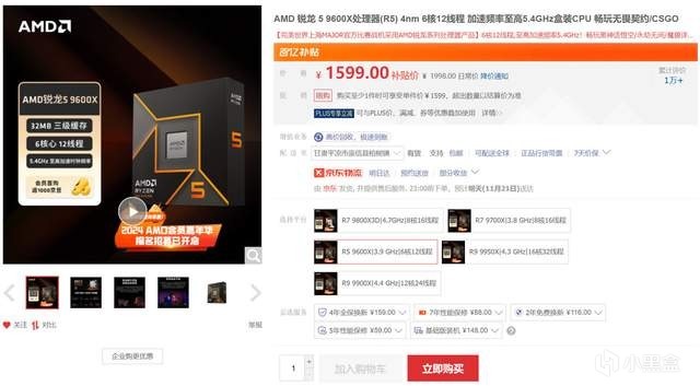 CPU方面,銳龍 5 9600X的表現大家也是有目共睹的,雖然規格看起來一般,但遊戲性能對標i5 14600KF絲毫不落下風,同時該U相較首發時價格已經下降了好幾百,性價比越來越高了。